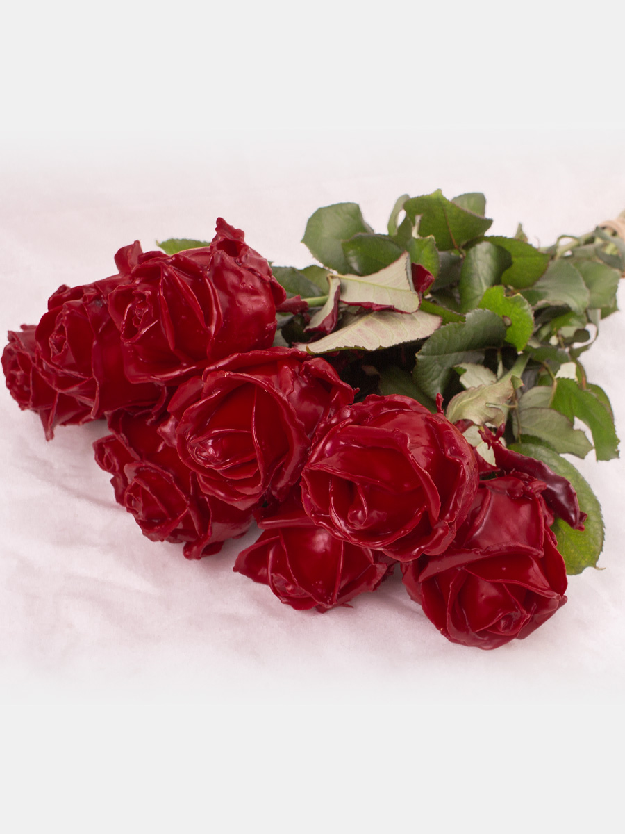 Verras iemand met deze bijzondere bordeaux gekleurde waxrozen. Deze rozen worden meestal met witte rozen, zoals de Avalanche roos, gemaakt. De Avalanche rozen zijn grootbloemig, hebben een hoge kwaliteit en zijn sterke rozen. Deze rozen worden gebruikt zodat de roos sterk genoeg is om de bordeaux kleurige wax te dragen. De rozen zullen in de binderij per stuk worden verpakt om te zorgen dat de rozen zo mooi mogelijk aankomen op de gewenste bestemming. Doordat deze waxrozen speciaal voor jou worden gemaakt, zit er een aantal dagen levertijd op deze rozen. Doordat deze rozen zwaar zijn door de wax, zijn ze perfect geschikt om te gebruiken in een decoratiestuk, zoals een kerstkrans of ander boeket. Kijk op onze pagina van waxrozen () voor ons volledige assortiment van deze bijzondere waxrozen.