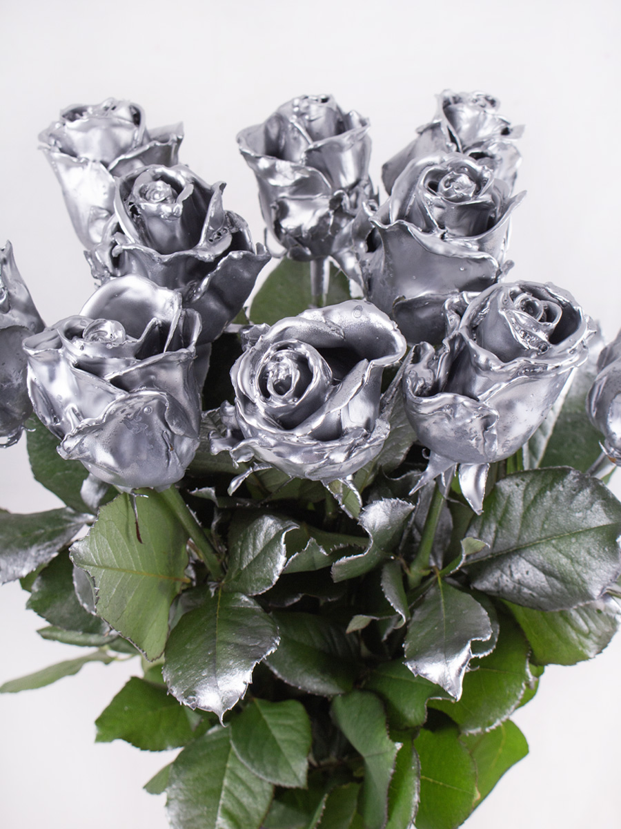 Zilveren rozen voor een bijzondere gelegenheid. Deze waxrozen zijn beschikbaar in de kleuren van zilver, goud, koper, rood, bordeaux en wit. De kleuren van de waxrozen zijn afgestemd op de periode in de herfst en rondom de kerst. Met deze zilveren waxrozen kun je bijvoorbeeld een prachtig kerstboeket of kerstkrans cadeau geven aan familie, vrienden, of een geliefde. Niet alleen voor deze speciale gelegenheden, maar bijvoorbeeld ook voor een jubileum kunnen deze rozen een prachtig gebaar zijn. Dit boeket wordt gebonden met 10 zilveren rozen, maar wij geven ook de optie om een groter boeket samen te stellen. Kies hier een boeket () met zilveren rozen tussen de 10 en 101 stuks om je eigen wensen te vervullen! Maak een prachtig gebaar met deze bijzondere waxrozen die met verse rozen worden gemaakt, speciaal voor jou!