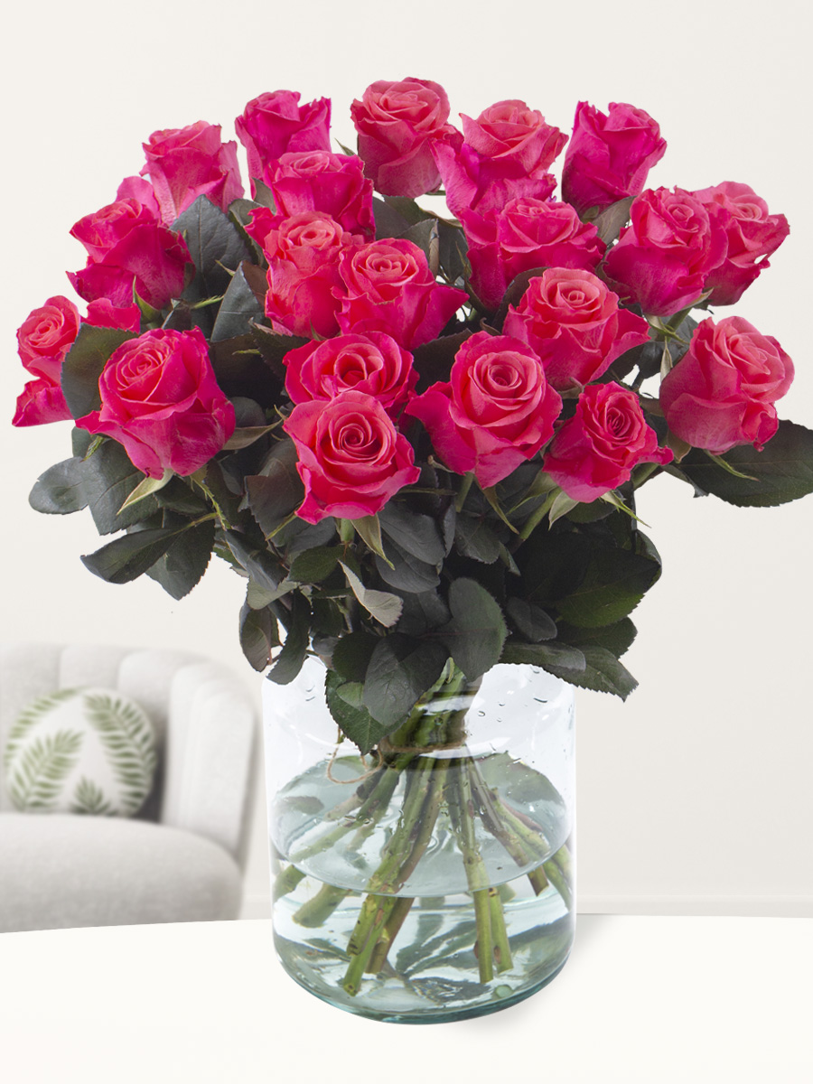 Dit prachtige boeket rozen in een speciale kleur wordt op jouw verzoek met de hand gebonden en op de datum van jouw keuze naar het adres van jouw keuze gestuurd! Laat felroze rozen bezorgen zonder doornen en met een heerlijke rozengeur.
