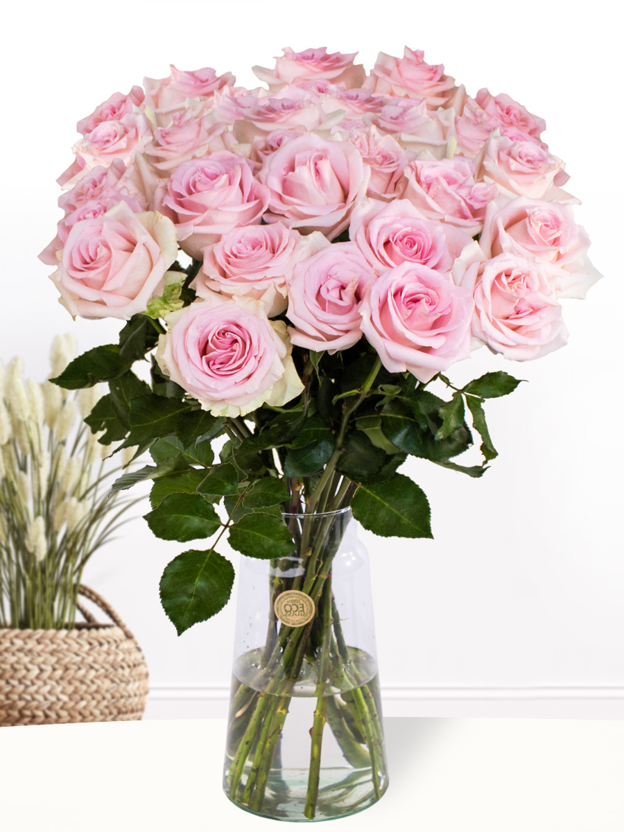 Geef een liefdevol boeket cadeau met dit boeket van 30 roze rozen. De rozen in dit boeket zijn van de soort Sweet Revival en worden door Timaflor in Kenia gekweekt. Door de steellengte van wel 60 centimeter komen deze rozen het mooiste uit in een smalle hoge vaas. Deze prachtige Sweet Revival roze rozen zijn in ons brede assortiment ook beschikbaar in boeketten met andere aantallen. Kies een boeket van 10 ()of 20 rozen (), of een boeket rozen samen met een Moët & Chandon champagne ()! Surprose geeft je ook de optie om een afwijkend aantal van deze roze rozen te bestellen van 10 tot wel 500 stuks! Kijk bij onze categorie ‘kies je eigen aantal ()’ en laat je verrassen door ons bijzondere assortiment en speciale mogelijkheden. Verras met Surprose jezelf of iemand anders met dit geweldige boeket van 30 roze rozen.