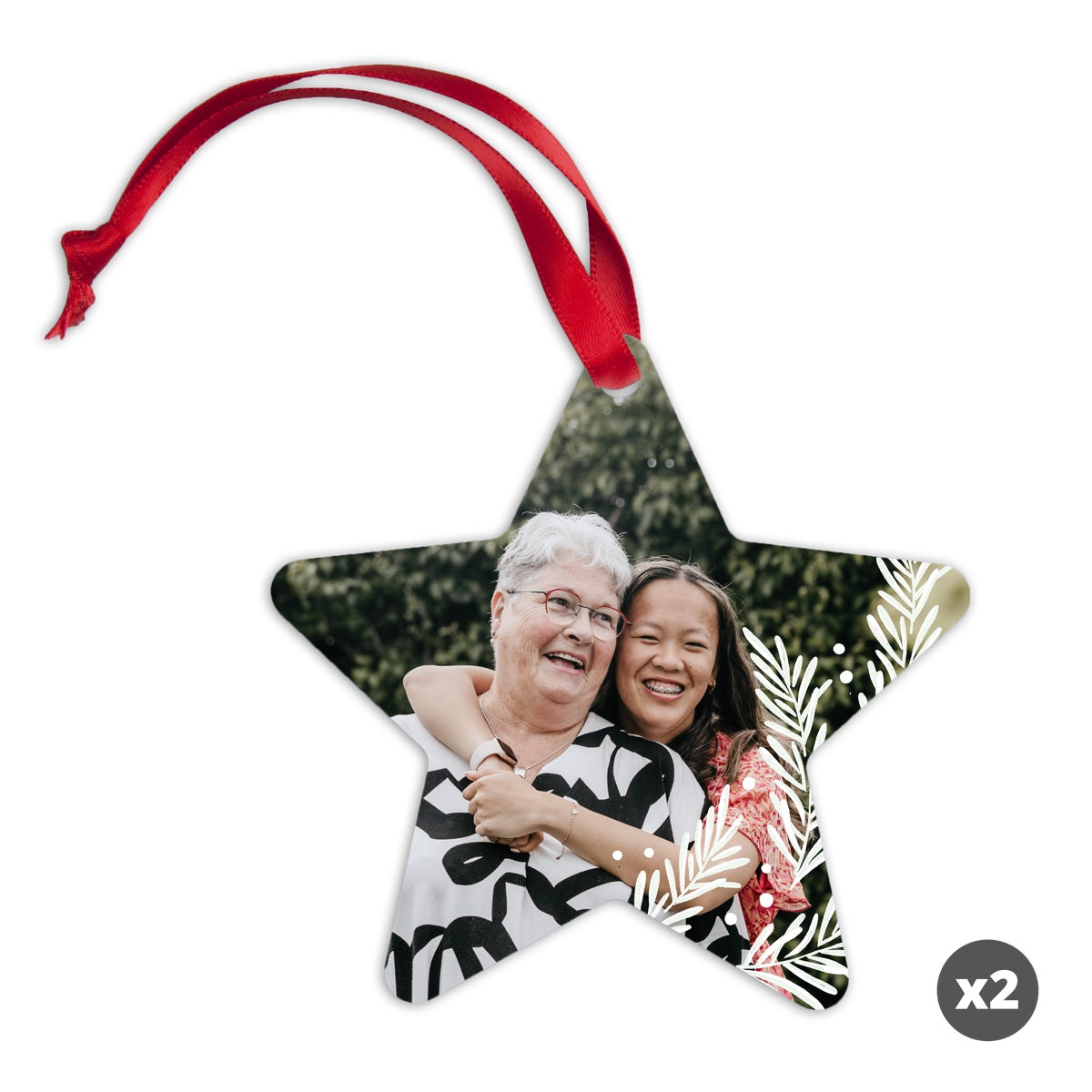Prachtige kersthangers met foto en/of tekst. Maak jouw eigen aluminium kersthanger voor in de kerstboom. Met stijlvol rood ophanglintje.
