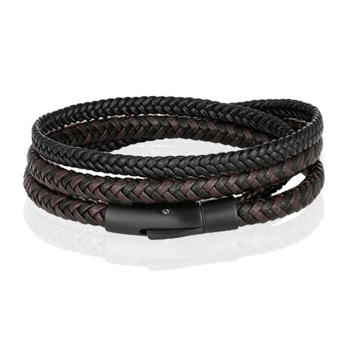 LGT JWLS lederen armband voor mannen. Gemaakt van een combinatie van zwart en bruin gevlochten leer.