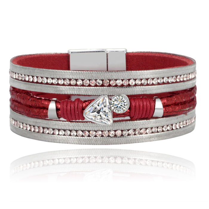 Deze rode armband van Deja is een armband bestaande uit meerdere lagen en bandjes.