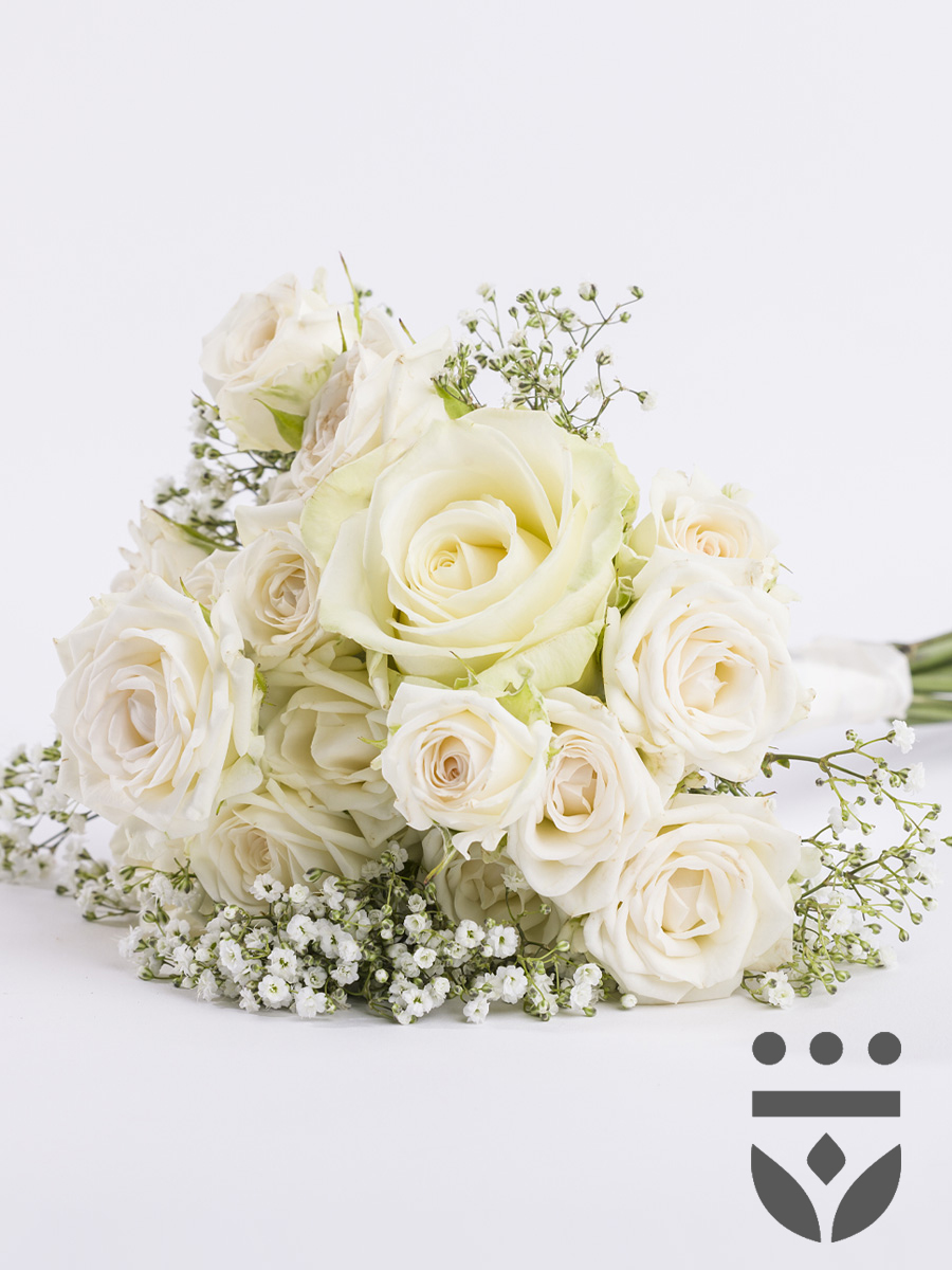 Dit is de kleinere versie van het witte bruidsboeket – zilver. Zo kunnen je bruidsmeisjes met hetzelfde boeket lopen als dat jij vast hebt, maar dan in een kleinere versie. Het is gebruikelijk dat bruidsmeisjes hetzelfde boeket vast hebben, maar dan een kleinere versie. Normaliter zitten dan dezelfde rozen in beide boeketten, maar je kunt natuurlijk ook kiezen voor wit voor de bruidsmeisjes boeketten (https://www.surprose.nl/bruidsboeket/bruidsmeisjes-boeket), zodat jouw boeket meer opvalt. Witte rozen en witte trosrozen met gipskruid voor je bruidsmeisjes. Wist je dat hier ook bijpassende centerpieces en tafelstukjes bij zijn? Kijk tussen de witte bruidscollectie en kijk naar de boeketten met zilver in de naam. Die rozen zijn allemaal van dezelfde stijl!
