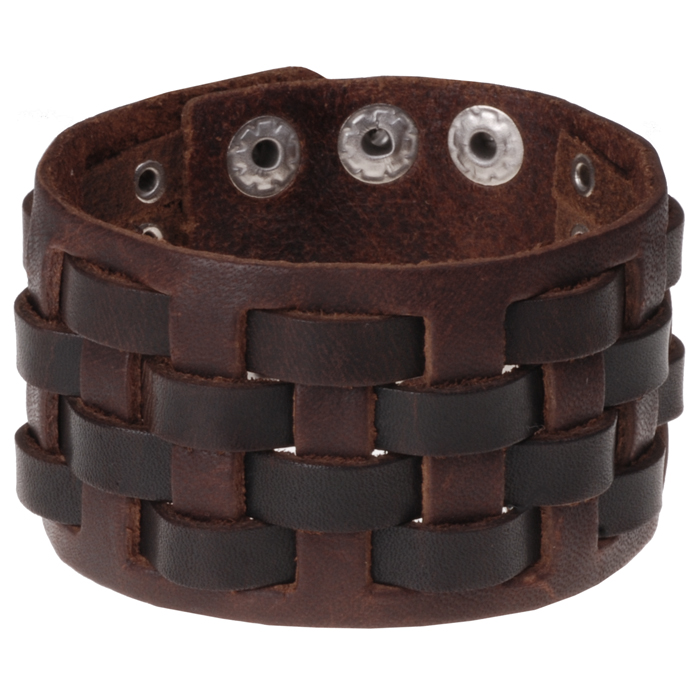 Bruine geweven leren armband voor heren. Deze prachtige bruine leren armband is 4cm breed en heeft een stevige drukknoop sluiting. De armband is verstelbaar van 18 t/m 21cm.