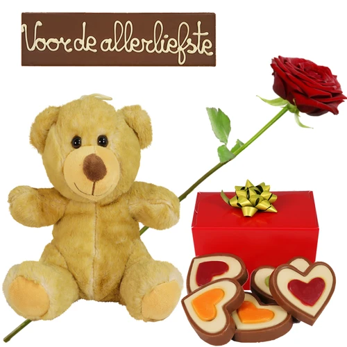 Chocolade bestellen voor jouw geliefde samen met een knuffelbeer. Bestel eenvoudig. Verras jouw geliefde. Kies de gewenste bezorgdatum.