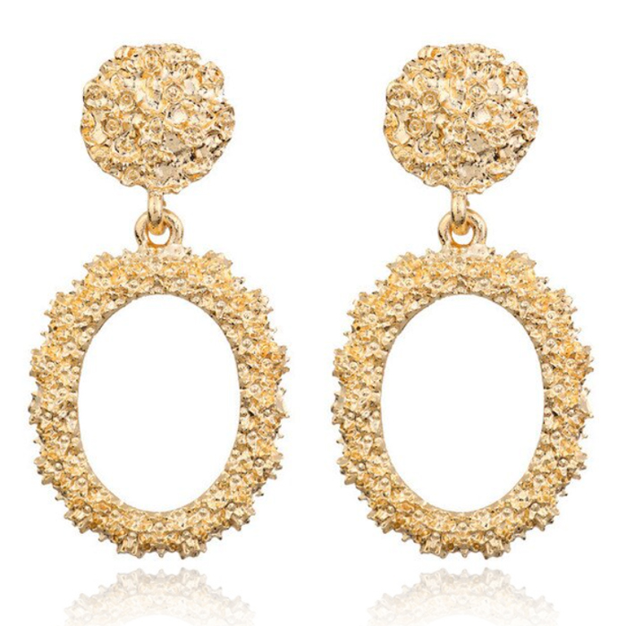 Het metaal heeft een unieke gedeukte structuur, die de oorbellen een extra interessante en moderne look geeft.