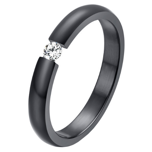 Cilla Jewels dames ring vervaardigd uit hoogwaardig zwart gecoat edelstaal met kristal. De zwarte ring heeft een breedte van 3mm. Deze prachtige stalen dames ring wordt geleverd in geschenkverpakking.