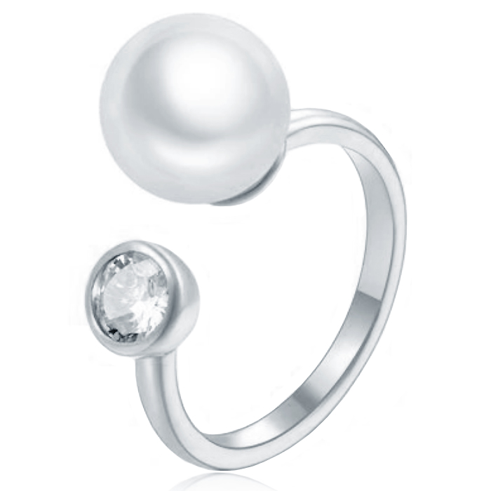 Dames Ring Zilverkleurig Verstelbaar Verzilverd met Zirkonia en Parel