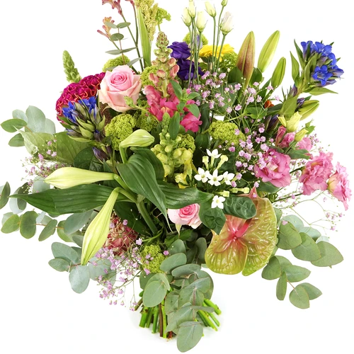 Bloemen boeket de Geheime tuin waarin de bloemen centraal geplaatst worden. Boeket bloemen van deze tijd. Versgarantie. Thuiswinkel lid.