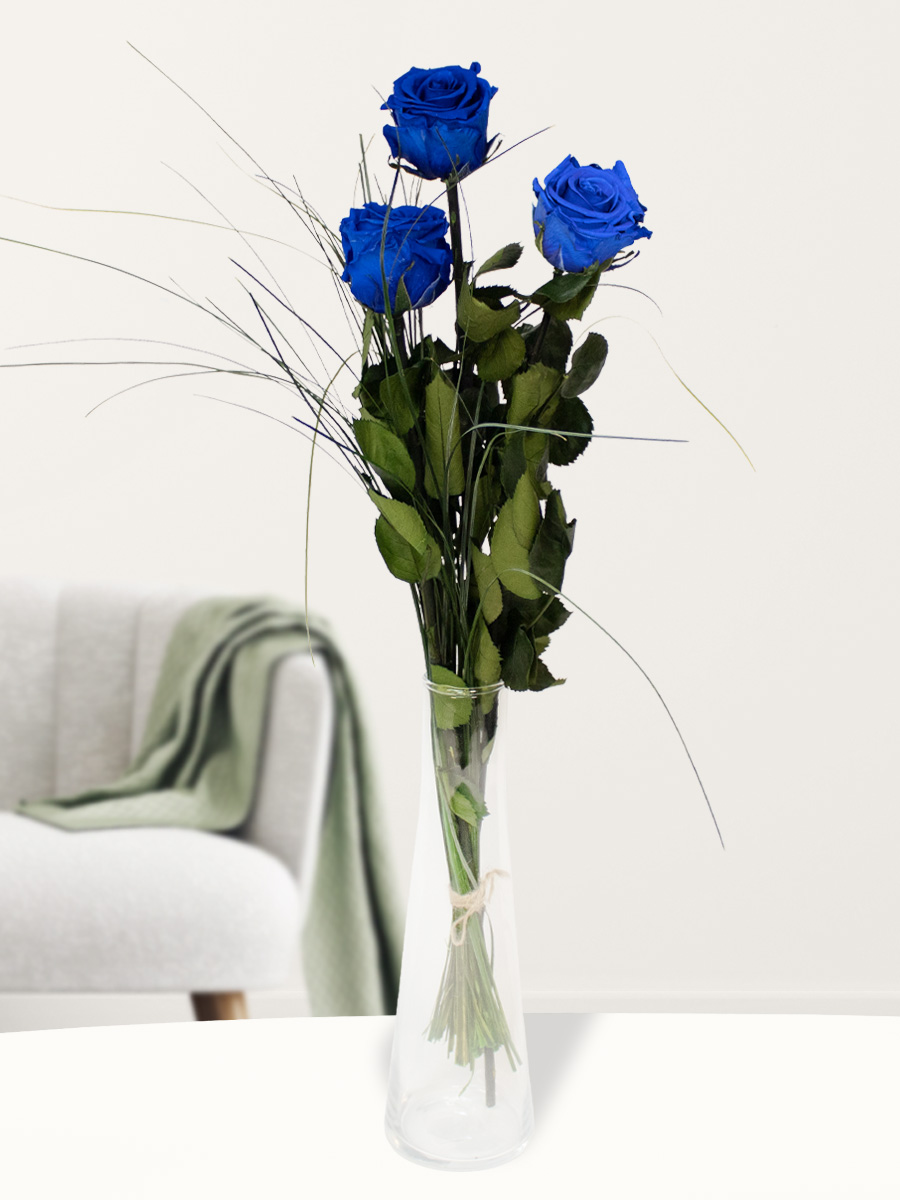* Buiten direct zonlicht houden De blauwe rozen blijven het mooist, als je ze uit direct zonlicht houdt. Zet ze liever uit de zon of in de schaduw. We willen natuurlijk niet de kans lopen dat de mooie felle blauwe kleur van de rozen zou kunnen vervagen. Het enige aan verzorging dat de rozen af en toe kunnen gebruiken is dat je ze een beetje afstoft. Verder hebben ze eigenlijk niks nodig. Geen voeding, geen water, niks!