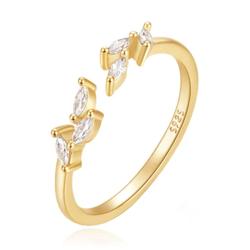 Deze elegante Elenza verstelbare ring, gemaakt van .925 sterling zilver, is voorzien van een delicaat bladmotief met heldere zirkonia. Dankzij het verstelbare ontwerp past deze ring perfect om elke vinger, waardoor het een veelzijdig en stijlvol sieraad is voor elke gelegenheid. De ring heeft een verstelbare maat voor een comfortabele pasvorm.