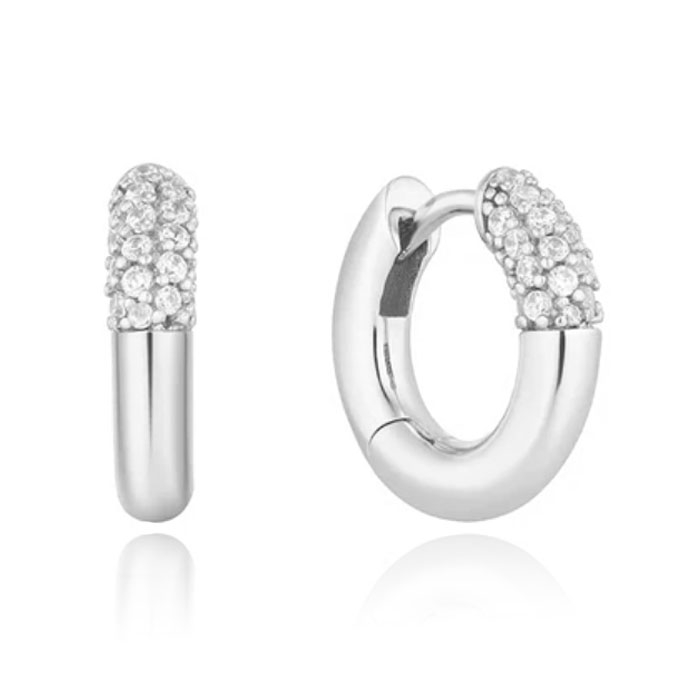 Deze zilverkleurige Elenza oorbellen zijn ingelegd met sprankelende pavé zirkonia's, wat een luxueuze uitstraling geeft. Gemaakt van sterling zilver .925, bieden deze oorbellen een perfecte mix van comfort en glamour. Ideaal voor zowel casual als formele outfits, ze voegen een verfijnde touch toe aan elke look.