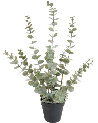 Een prachtige eucalypthus ca. H 57 cm x B 33 cm kunstplant inclusief zwarte pot zo om neer te zetten op iedere plaats in huis, of bedrijf.