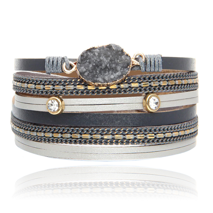 In het midden pronkt een mooie steen die de armband een extra touch boho geeft.
