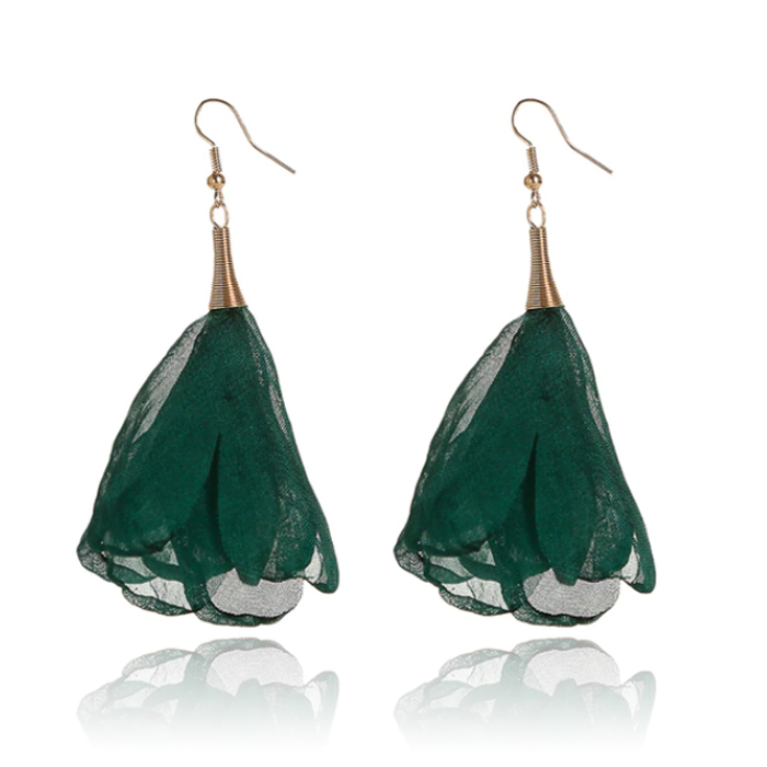 Deze oorbellen bestaan uit een grote, hangende kwast gemaakt van textiel.