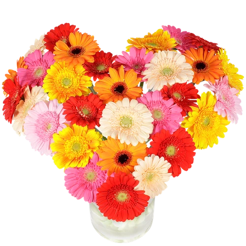 Groot hart boeket van gemengde gerbera’s kant en klaar zo in de vaas te plaatsen! Een lust voor het oog en een waanzinnige verassing voor je geliefde. Thuiswinkel Lid.