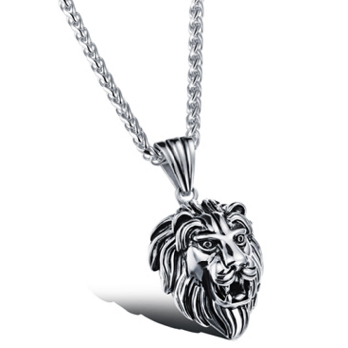 Mendes Kettinghanger Leeuw uitgevoerd met een Vossenstaart schakel ketting. De kettinghanger is vervaardigd uit gepolijst edelstaal en heeft een afmeting van 41 x 32mm. De zilverkleurige stalen ketting heeft een lengte van 60cm en is 3mm breed. De heren ketting sluit d.m.v een karabijnsluiting en wordt geleverd in geschenkverpakking.
