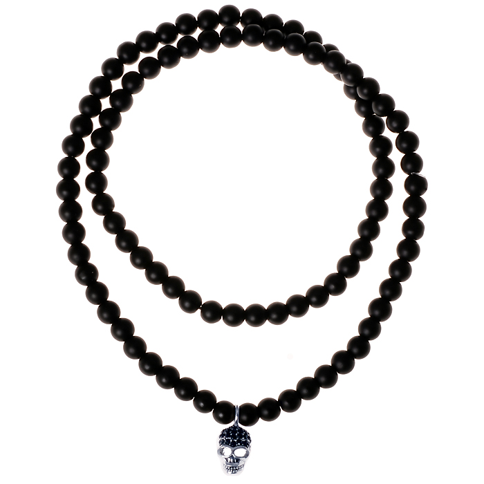 Mendes Jewelry kralen ketting inclusief kettinghanger voor heren. De Doodshoofd kettinghanger is vervaardigd uit 925 verzilverd edelstaal met zwarte ingelegde zikronia's. De ketting is vervaardigd uit zwarte Matte Agaat kralen. De heren ketting heeft een lengte van 70cm en de kralen zijn 0.8cm breed. De ketting is elastisch en kan over het hoofd worden getrokken. Wij leveren deze prachtige Mendes ketting in geschenkverpakking.
