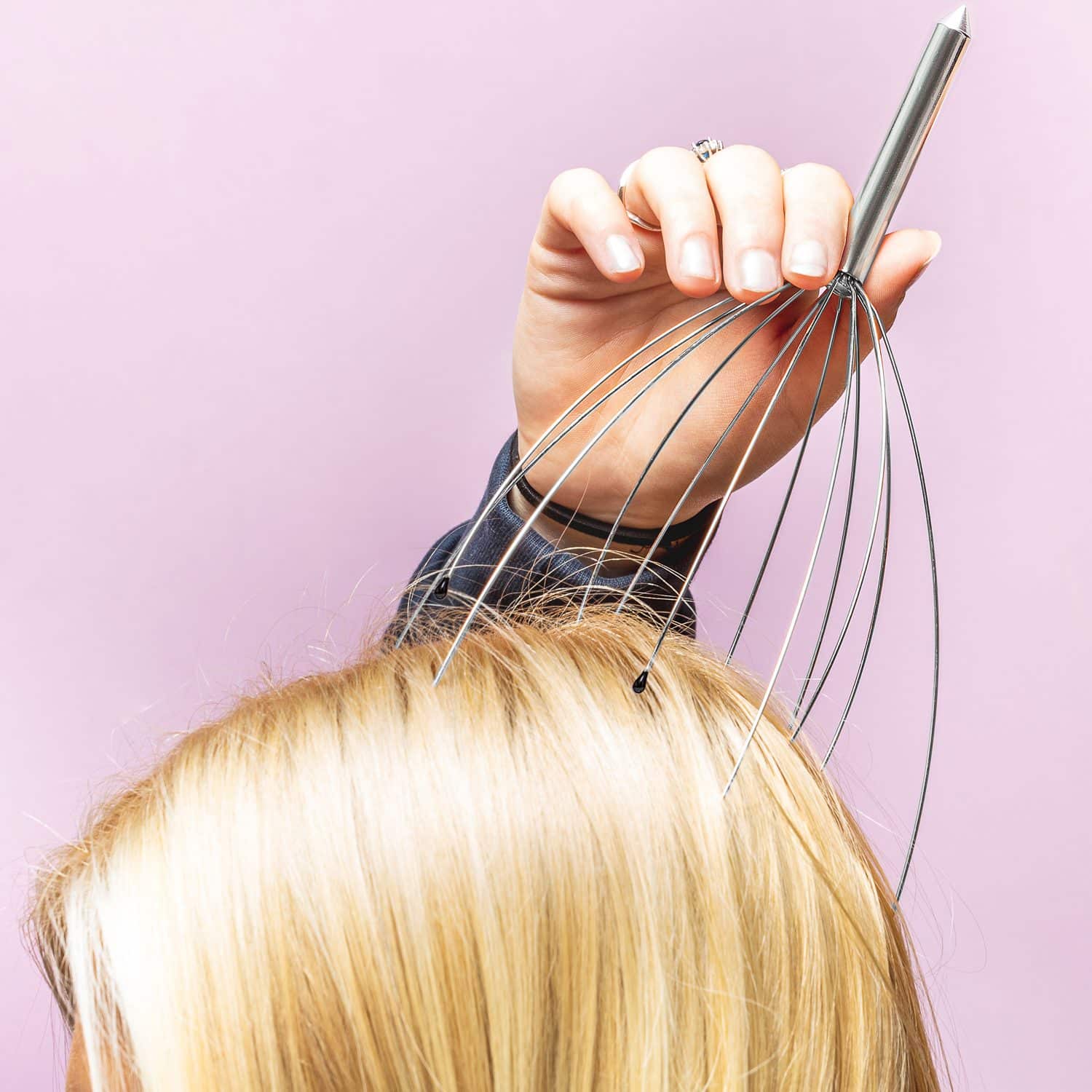 Hoofdmassage spin van Out of the Blue. Massagespin met flexibele poten, waarmee je jezelf of een ander een hoofdmassage kan geven. De flexibele poten van de massage spin stimuleren de zenuwuiteinden in je schedel, slapen en nek. Voor een ontspannen massage van de hoofdhuid.
