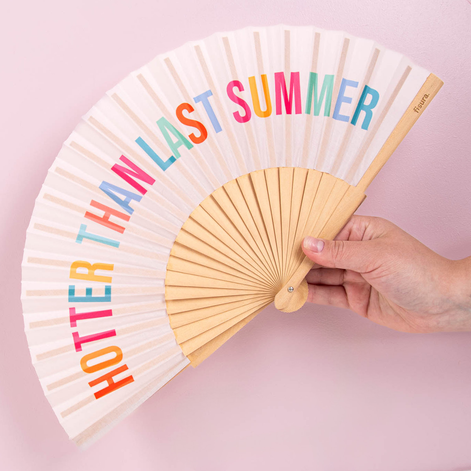 Met de Houten waaier Hotter Than Last Summer van Fisura zorg je dat je koel én cool blijft tijdens warme dagen. Deze luchtige en kleurrijke houten waaier met de tekst Hotter Than Last Summer is-ie niet alleen praktisch, maar ook een echte blikvanger. En omdat je hem compact kunt opvouwen, is hij makkelijk mee te nemen. Handig voor feestjes, om een hittegolf op het werk te overleven en natuurlijk voor middagen op het terras.