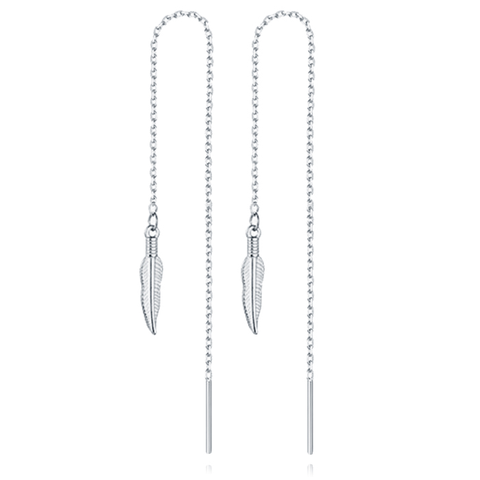 Deze mooie dames oorbellen hebben een zilverkleurige ketting met daaraan een blad. De ketting van edelstaal heeft een lengte van 80 mm. Het blad is 22 mm lang. Deze dames oorbellen met ketting wegen 2 gram en zij. Geschikt om te dragen tijdens elke gelegenheid.