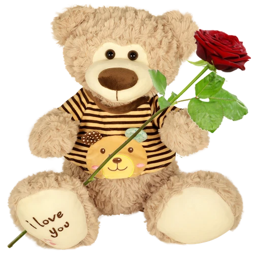Prachtige pluche knuffelbeer met op zijn voet de tekst i love you is er op geborduurd. Een unieke knuffelbeer. Net even anders als alle andere knuffels. Thuiswinkel garantie