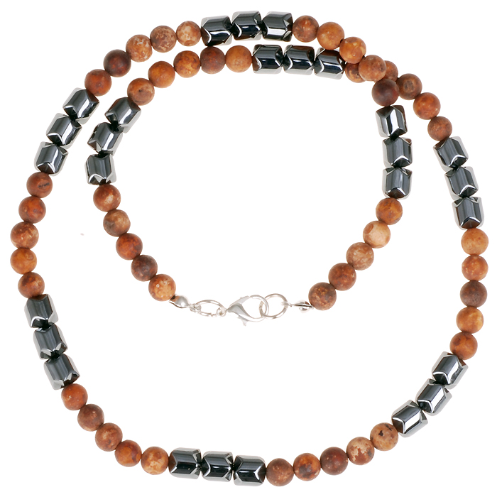 Memphis Kralenketting uitgevoerd met 6mm bruine natuursteen kralen en Hematiet kralen. De ketting heeft een lengte van 52 cm en en heeft een stevige sluiting. Deze prachtige heren ketting met kralen wordt geleverd in geschenkverpakking.