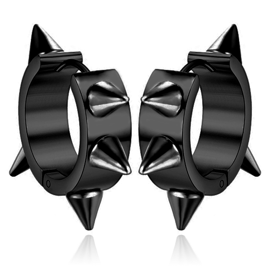 LGT Jewels creolen uitgevoerd in edelstaal met zwarte PVD coating. De zwarte creolen zijn voorzien van spikes en hebben een afmeting van 13 x 4mm. Deze schitterende Rock/Punk creolen worden per set geleverd in geschenkverpakking.