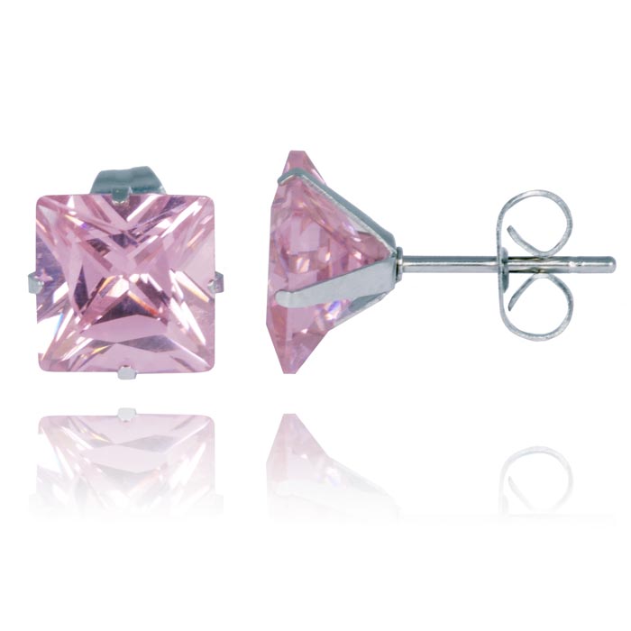 LGT Jewels Stud oorbellen uitgevoerd in edelstaal. De Studs zijn voorzien van een roze vierkante Zirkonia. Wordt per set geleverd in geschenkverpakking.