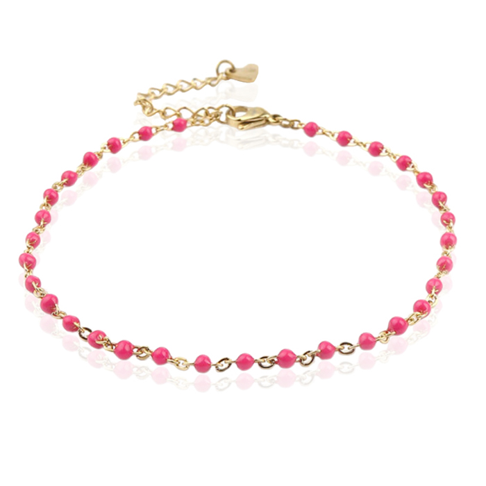 Het ontwerp bestaat uit een anker schakel enkelband met meerdere balletjes met een opvallende roze emaille afwerking. Een perfecte aanvulling op elke zomerse outfit. De enkelband is verstelbaar en heeft een lengte van 23 + 4cm.