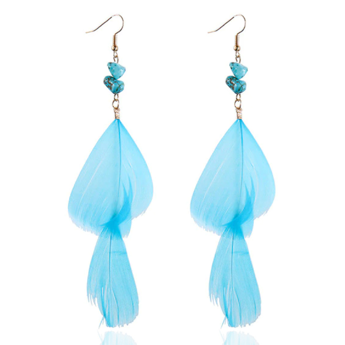 Deze veren oorbellen van LGT JWLS hebben een langwerpige vorm en zijn voorzien van mooie blauwe veertjes.