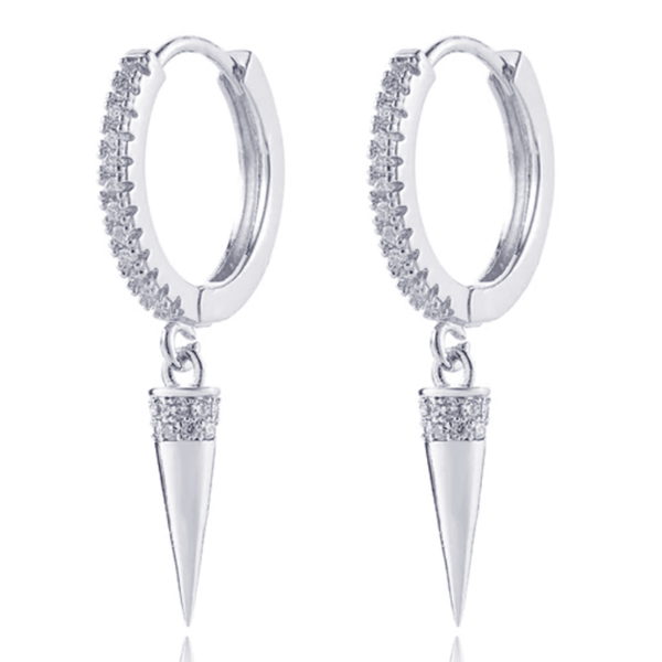 De oorringen zijn voorzien van glinsterende zirkonia stenen en hebben een unieke hanger in de vorm van een conische cilinder, ook bezet met schitterende zirkonia stenen.