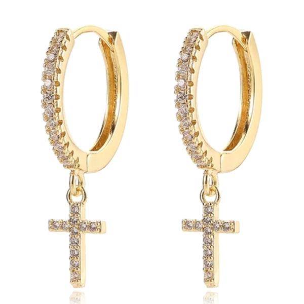 De oorringen zijn voorzien van glinsterende zirkonia stenen en hebben een unieke hanger in de vorm van een kruis, ook bezet met schitterende zirkonia stenen.