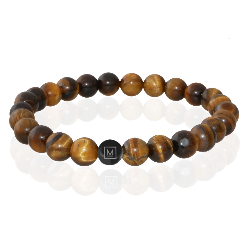 Kralenarmband met natuursteen kralen van het merk Memphis Accessoires. De armband heeft goudgele kralen van 8mm, gemaakt van geel tijgeroog.