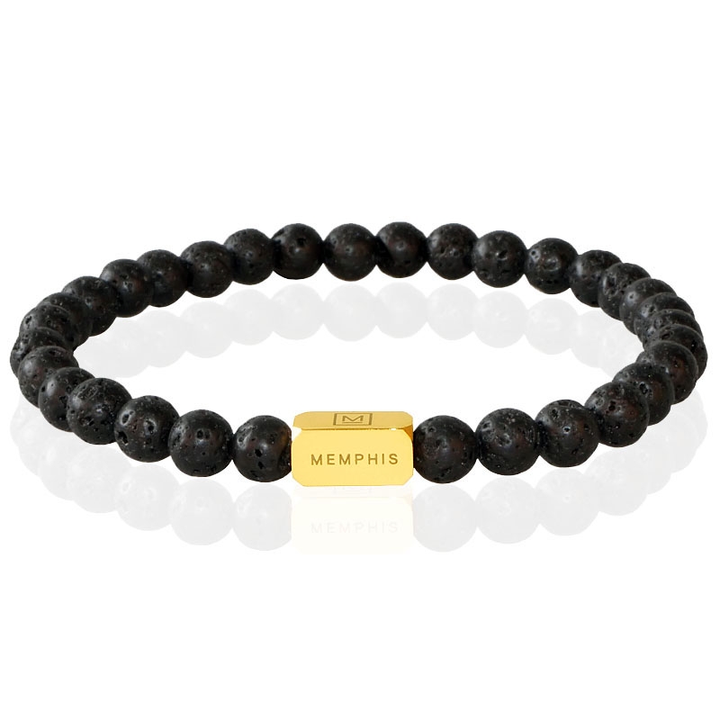 Kralenarmband met natuursteen kralen van het merk Memphis Accessoires. De armband heeft zwarte kralen van 6mm, gemaakt van lavasteen.