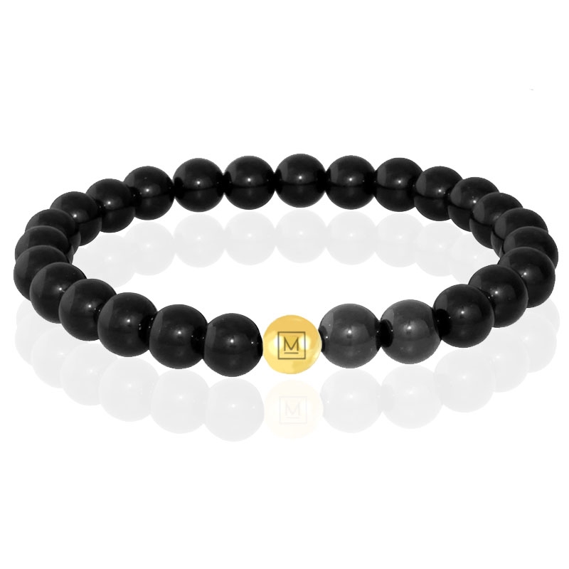 Kralenarmband met natuursteen kralen van het merk Memphis Accessoires. De armband heeft zwarte kralen van 8mm, gemaakt van zwart onyx agaat.