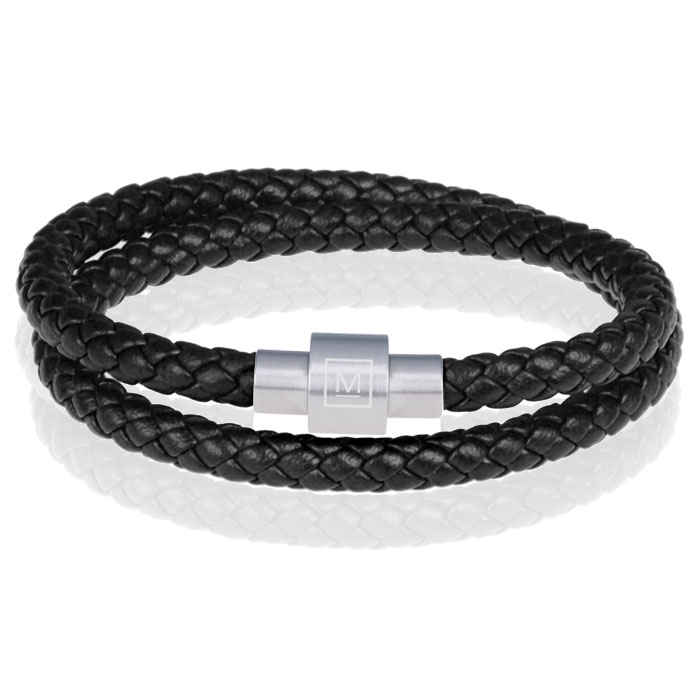 LGT Jewels leren wrap armband voor mannen. Deze lederen armband is van Nederlandse bodem en volledig met de hand gemaakt. De armband dient twee keer om de pols te worden gewikkeld. Prachtig gevlochten zwart leer van 6mm dik in combinatie met een zilverkleurige, gepolijste edelstaal sluiting. De sluiting is voorzien van een stevige magneet waardoor deze goed vast klemt. De armband is in verschillende maten beschikbaar. Wij verzenden de armband in een geschenkverpakking.