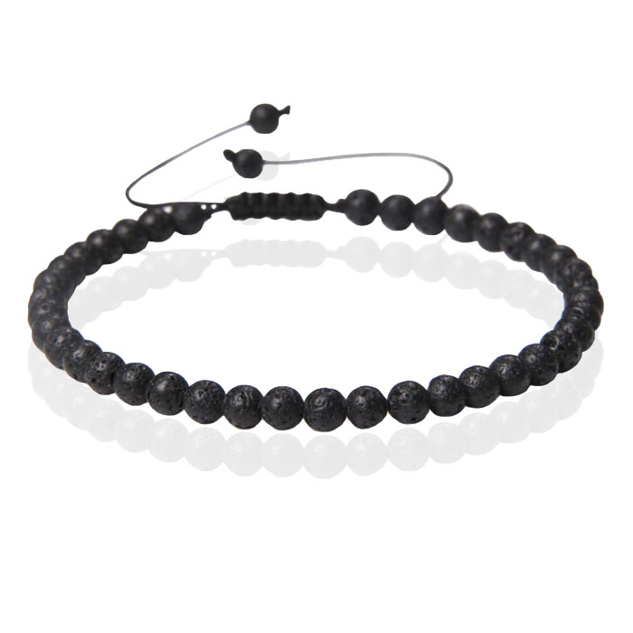 Natuursteen armband uit de Memphis No.1 collectie met 4mm zwarte lavasteen kralen gemaakt van hoge kwaliteit natuursteen.