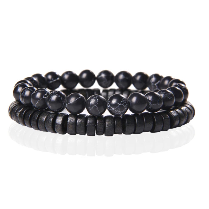 Memphis stacked heren armbanden set. Deze set bestaat uit 2 armbanden met kralen. De kralen zijn gemaakt van natuursteen en hout.
