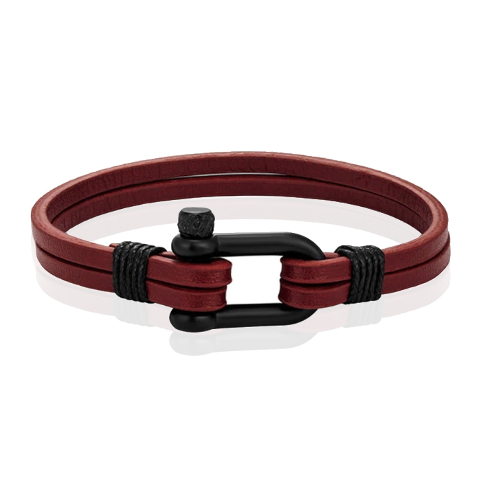 De armband is voorzien van een dubbele lederen band, gemaakt van plat leer. De kleur van de armband is rood.