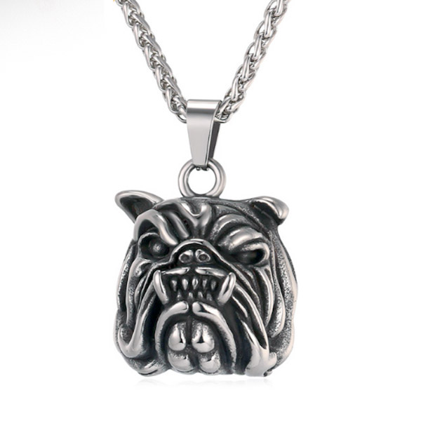 Kettinghanger BullDog uitgevoerd in zilver inclusief een prachtige Rope schakel ketting van Mendes Jewelry By LGT. De Bulldog kettinghanger is vervaardigd uit hoogwaardig edelstaal. De stalen ketting heeft een lengte van 50+5cm en is 3mm breed. De heren ketting sluit d.m.v een karabijnsluiting en wordt geleverd in geschenkverpakking.