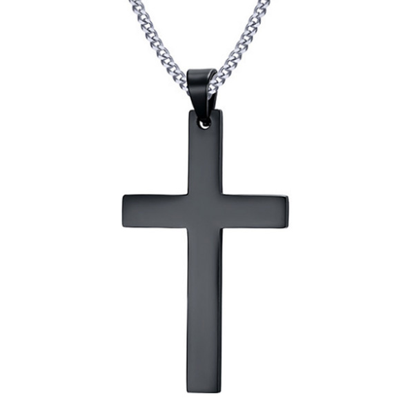 Zwarte kruis kettinghanger inclusief ketting van Mendes Jewelry By LGT. De Cross kettinghanger is vervaardigd uit edelstaal met zwarte Coating en heeft een afmeting van 5 x 3cm. De edelstaal ketting is uitgevoerd met een prachtige Cubaanse schakel en sluit d.m.v een karabijnsluiting. De afmeting van de ketting is 60cm lang en 3mm breed. De kettinghanger wordt geleverd in geschenkverpakking.