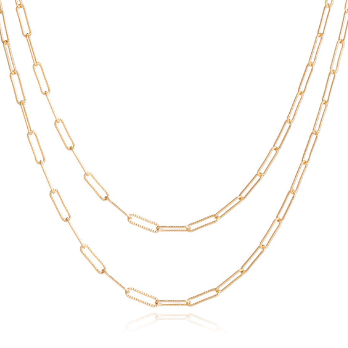 De kettingen zijn gemaakt van metaal en zijn afgewerkt met een gouden coating, wat de set een elegant en verfijnd uiterlijk geeft.