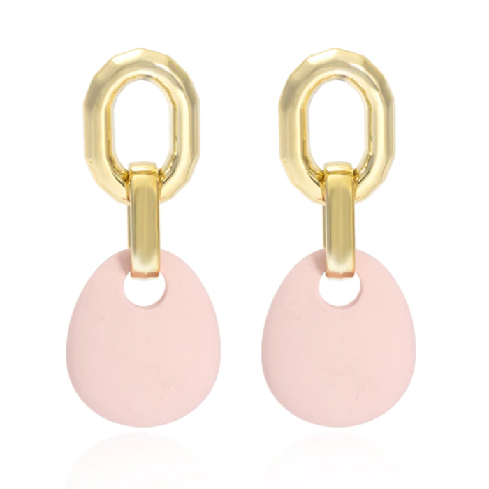 Deze vrolijke dames oorbellen van LGT JWLS zijn uitgevoerd in een vergulde metaallegering. De hangers zijn voorzien van een roze druppelvormige steen. Je kunt deze oorbellen zowel casual als chique dragen. De oorbellen hebben een afmeting van 57 x 24 mm en wegen 9 gram.