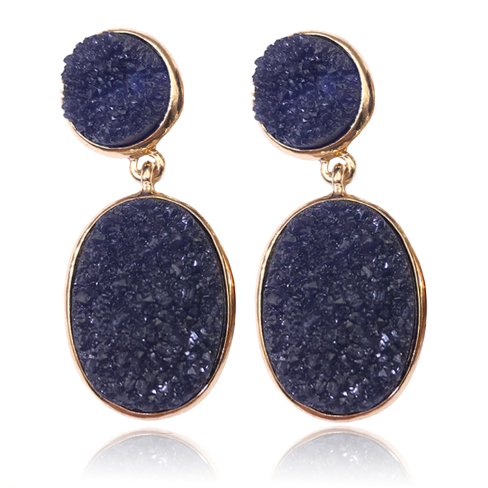 Deja Oorbellen voor Dames. Elegante Studs met Hangers, versierd met prachtige donker blauwe imitatie stenen.