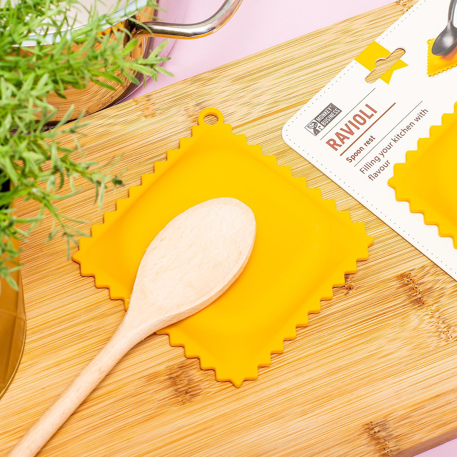 Ravioli lepelhouder van Monkey Business. Een lepelhouder in de vorm van een oversized ravioli, om je vieze spatels en lepels op te leggen. Dit unieke pastakussentje is 12 x 12 cm groot en gemaakt van siliconen. Zo krijg je nooit meer vieze pastavlekken op je aanrecht of eettafel.