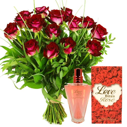 Prachtige hollandse Valentijn rode rozen samen bezorgd met gratis rozen parfum. Bestel eenvoudig voor Valentijnsdag.