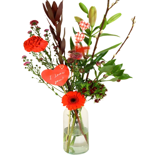 Verse bloemen, pluk liefdes bloemen in stijl opgemaakt in een glazen vaas kant en klaar geleverd bij jou geliefde!