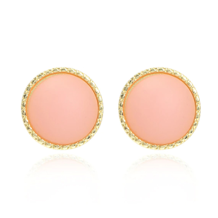 Deze hippe oorbellen zijn voorzien van een vergulde metaallegering. Ze wegen slechts 9 gram en dragen daarom heel prettig. De oorknoppen zijn voorzien van een grote ronde roze steen. Deze oorbellen. Van LGT JWLS hebben een afmeting van 20 x 20 mm.